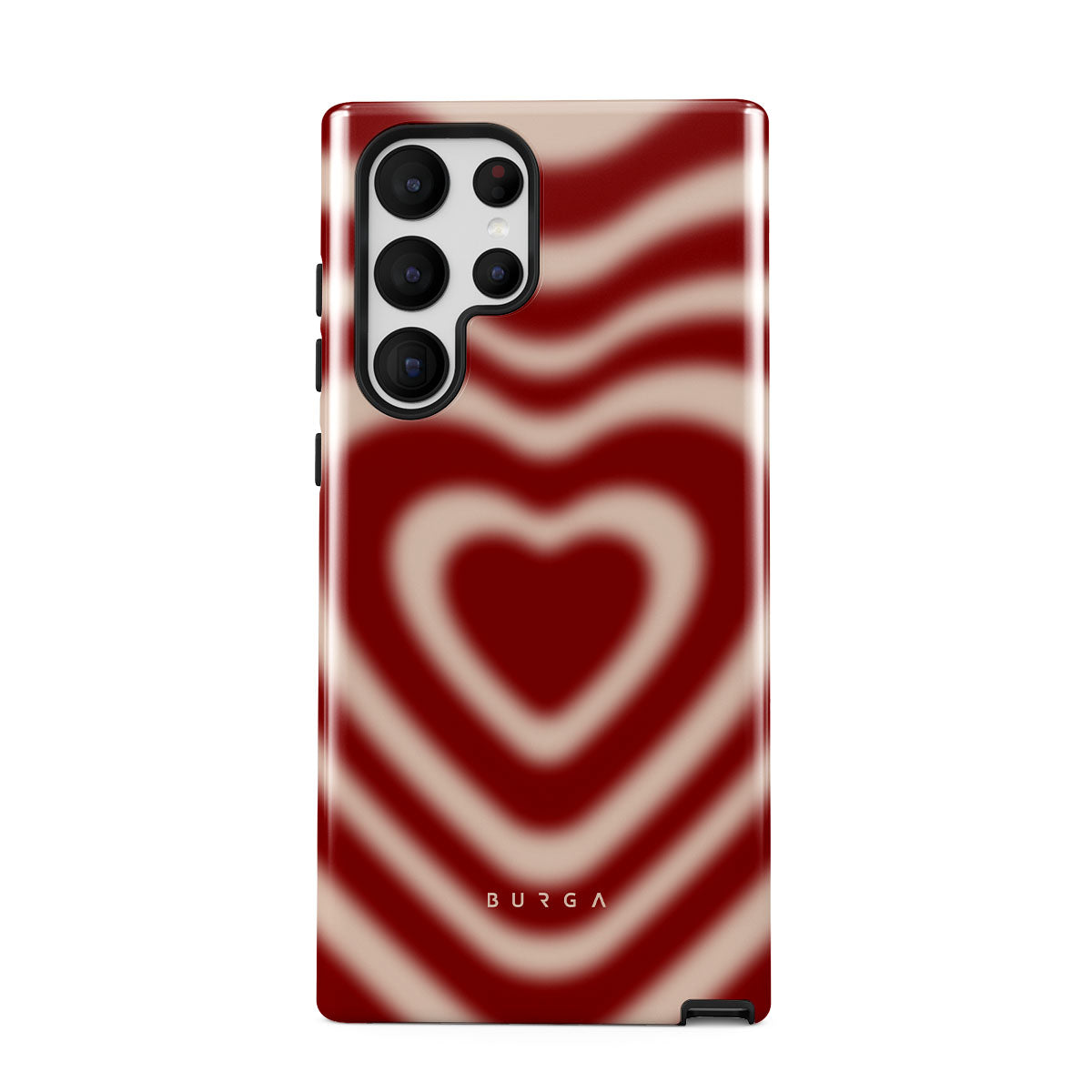A hypnotic swirl, where deep shades of red dance together to form an iconic heart. Our Sweet Affair Samsung Galaxy S22 Ultra Case phone case design merges passion with elegance, making it an evergreen choice for those who love without bounds.