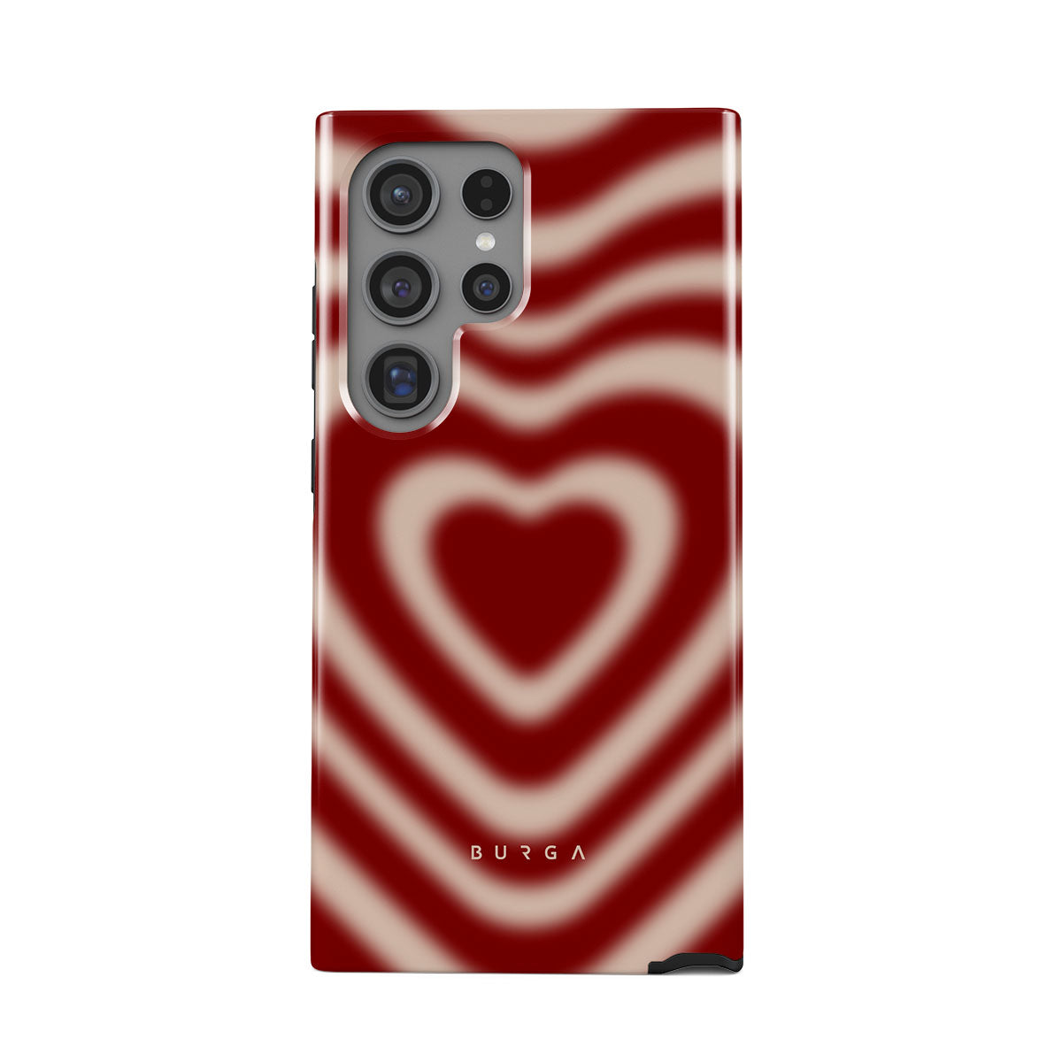 A hypnotic swirl, where deep shades of red dance together to form an iconic heart. Our Sweet Affair Samsung Galaxy S24 Ultra Case phone case design merges passion with elegance, making it an evergreen choice for those who love without bounds.