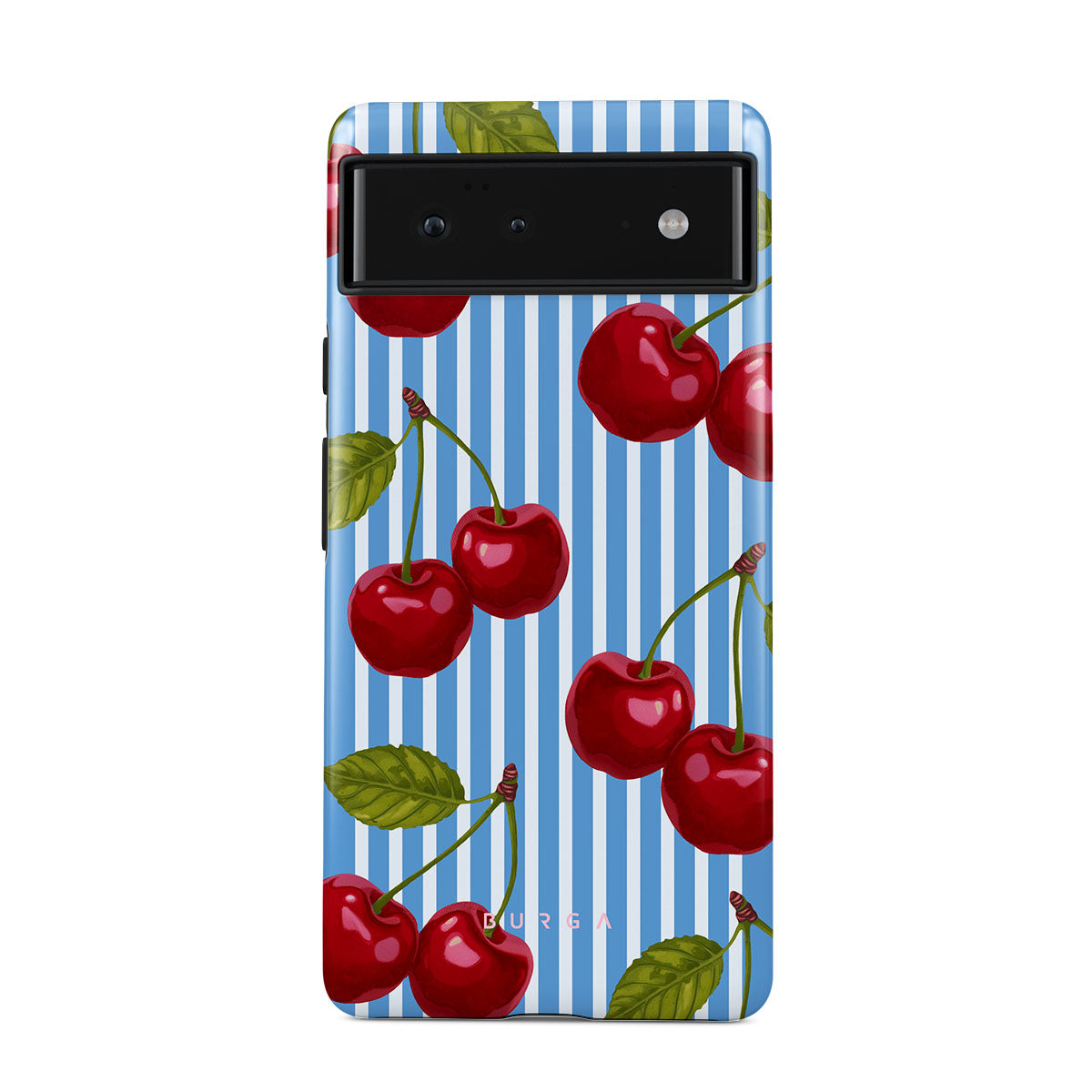Cherries dangle like earrings from blue skies, a fun reminder of that first bite of summer, juicy and bursting with laughter. Meet our Sweet Moment Google Pixel 6a phone case design.