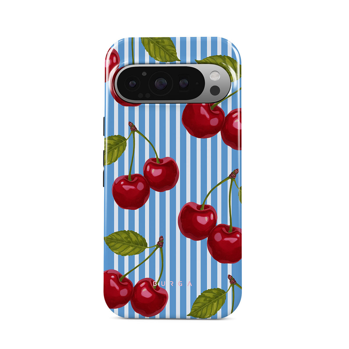 Cherries dangle like earrings from blue skies, a fun reminder of that first bite of summer, juicy and bursting with laughter. Meet our Sweet Moment Google Pixel 9 Pro XL phone case design.
