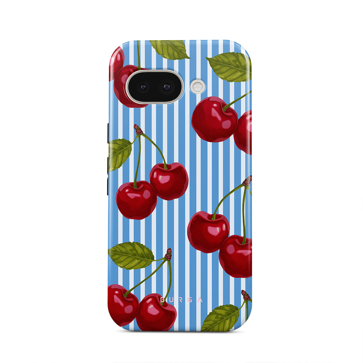 Cherries dangle like earrings from blue skies, a fun reminder of that first bite of summer, juicy and bursting with laughter. Meet our Sweet Moment Google Pixel 9a phone case design.