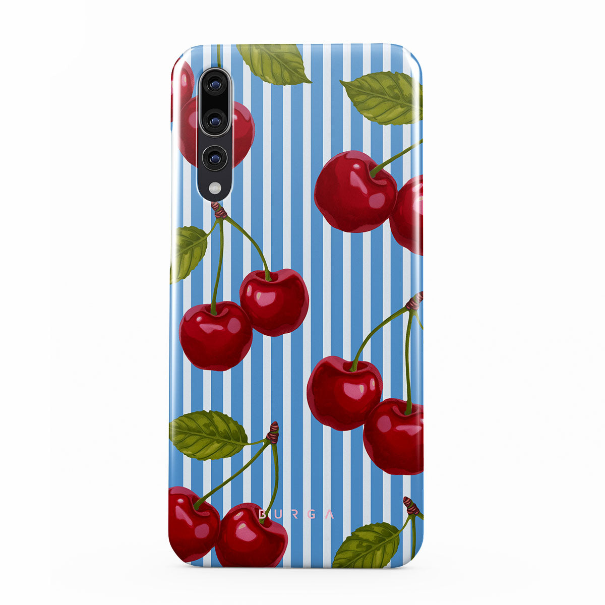 Cherries dangle like earrings from blue skies, a fun reminder of that first bite of summer, juicy and bursting with laughter. Meet our Sweet Moment Huawei P20 phone case design.