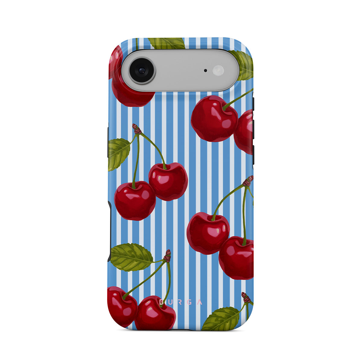 Cherries dangle like earrings from blue skies, a fun reminder of that first bite of summer, juicy and bursting with laughter. Meet our Sweet Moment iPhone Air phone case design.