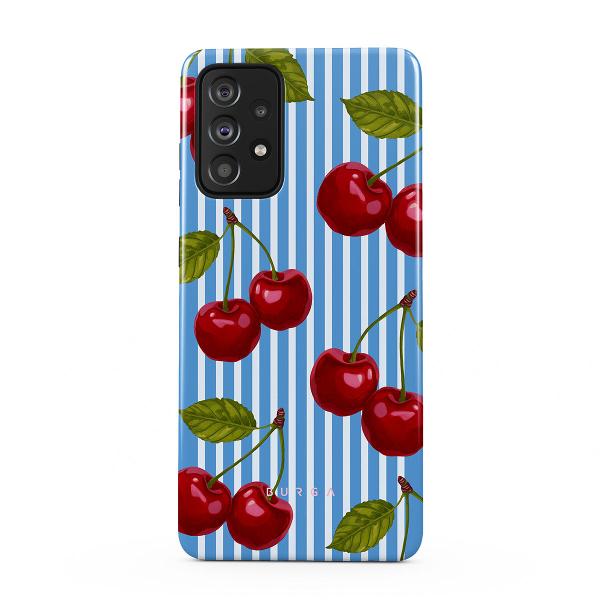 Cherries dangle like earrings from blue skies, a fun reminder of that first bite of summer, juicy and bursting with laughter. Meet our Sweet Moment Samsung Galaxy A52 / A52S 4G / 5G phone case design.
