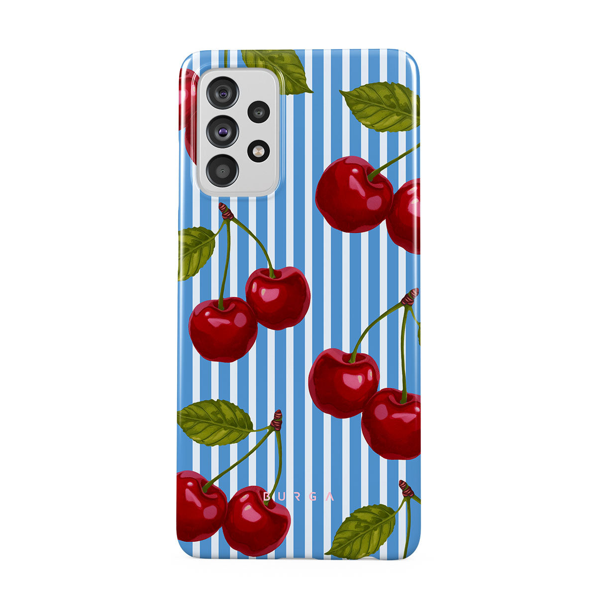 Cherries dangle like earrings from blue skies, a fun reminder of that first bite of summer, juicy and bursting with laughter. Meet our Sweet Moment Samsung Galaxy A72 4G / 5G phone case design.