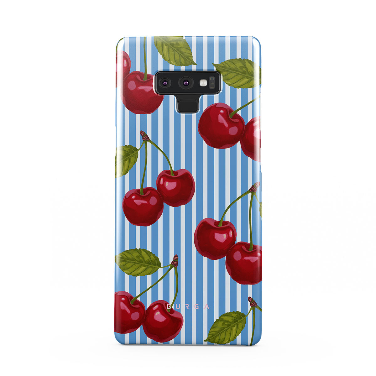 Cherries dangle like earrings from blue skies, a fun reminder of that first bite of summer, juicy and bursting with laughter. Meet our Sweet Moment Samsung Galaxy Note 9 phone case design.