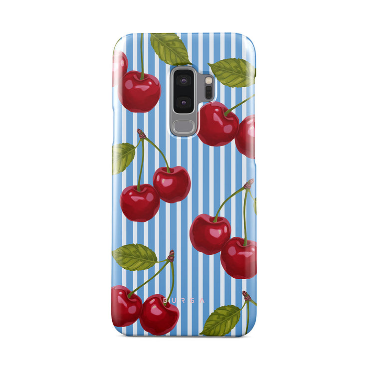 Cherries dangle like earrings from blue skies, a fun reminder of that first bite of summer, juicy and bursting with laughter. Meet our Sweet Moment Samsung Galaxy S9 Plus phone case design.