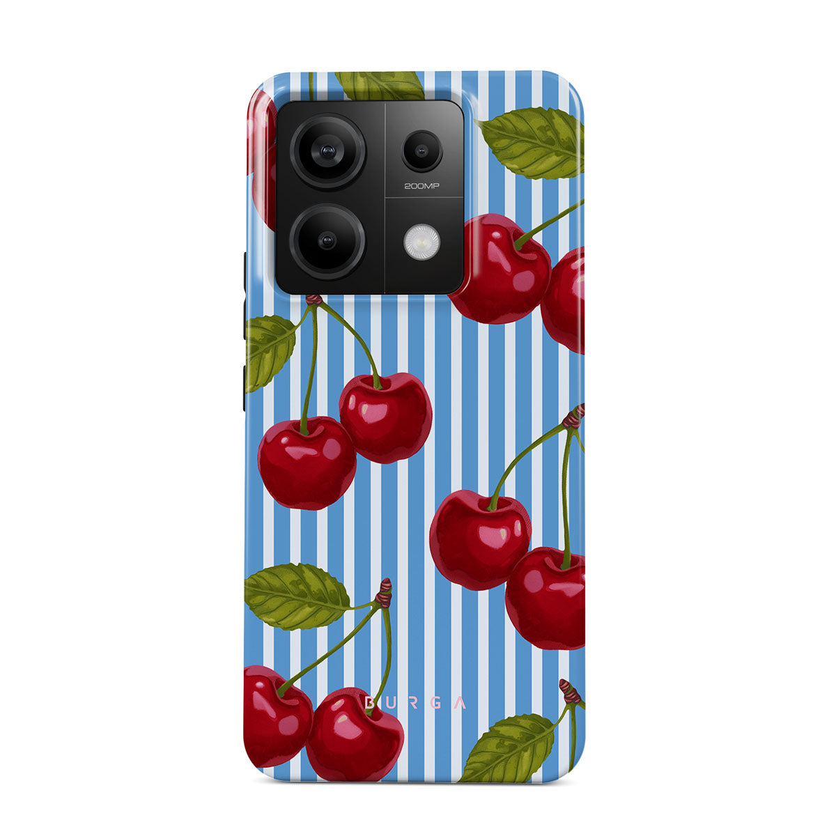 Cherries dangle like earrings from blue skies, a fun reminder of that first bite of summer, juicy and bursting with laughter. Meet our Sweet Moment Xiaomi Redmi Note 13 Pro 5G phone case design.