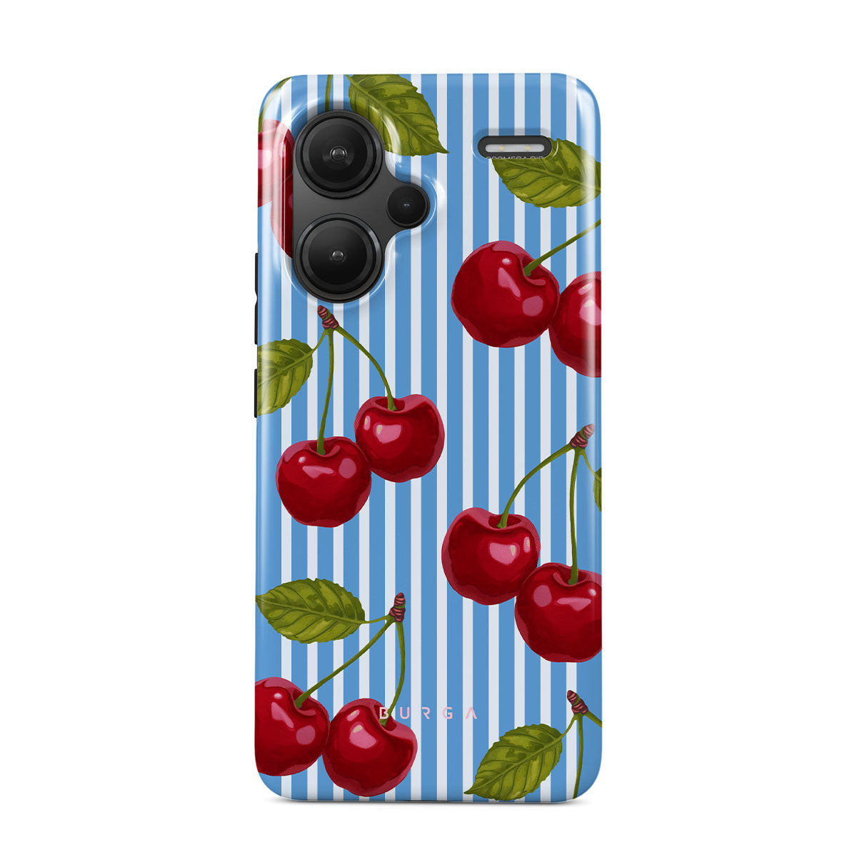 Cherries dangle like earrings from blue skies, a fun reminder of that first bite of summer, juicy and bursting with laughter. Meet our Sweet Moment Xiaomi Redmi Note 13 Pro+ 5G phone case design.