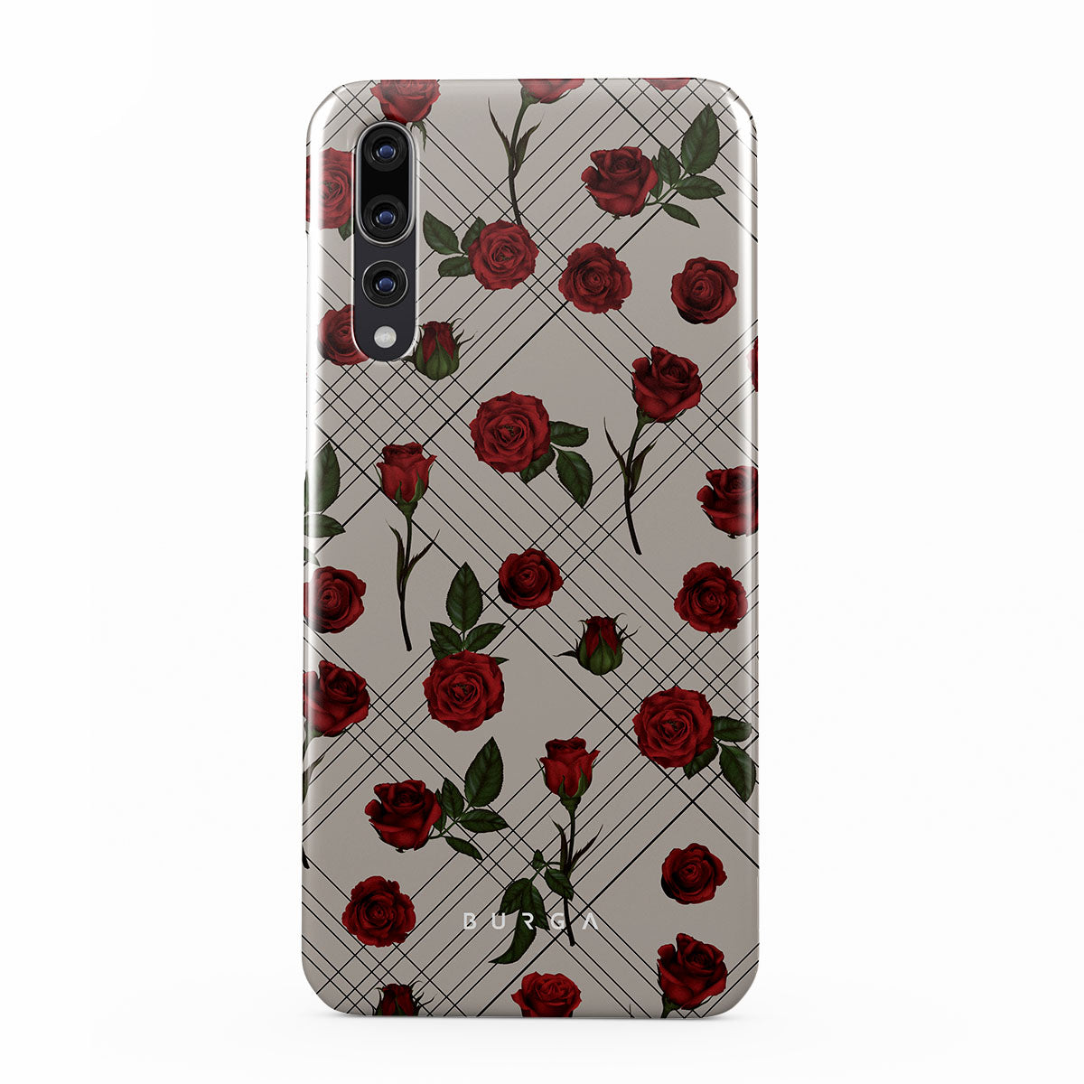 Embrace the subtle rebellion of our Sweet Sin Huawei P20 phone case design. On a muted nude-gray canvas, scattered small red roses hint at passions hidden beneath the surface. A design that balances the delicate with the daring. Crafted for those who find beauty in the unexpected and wear their edge with elegance.