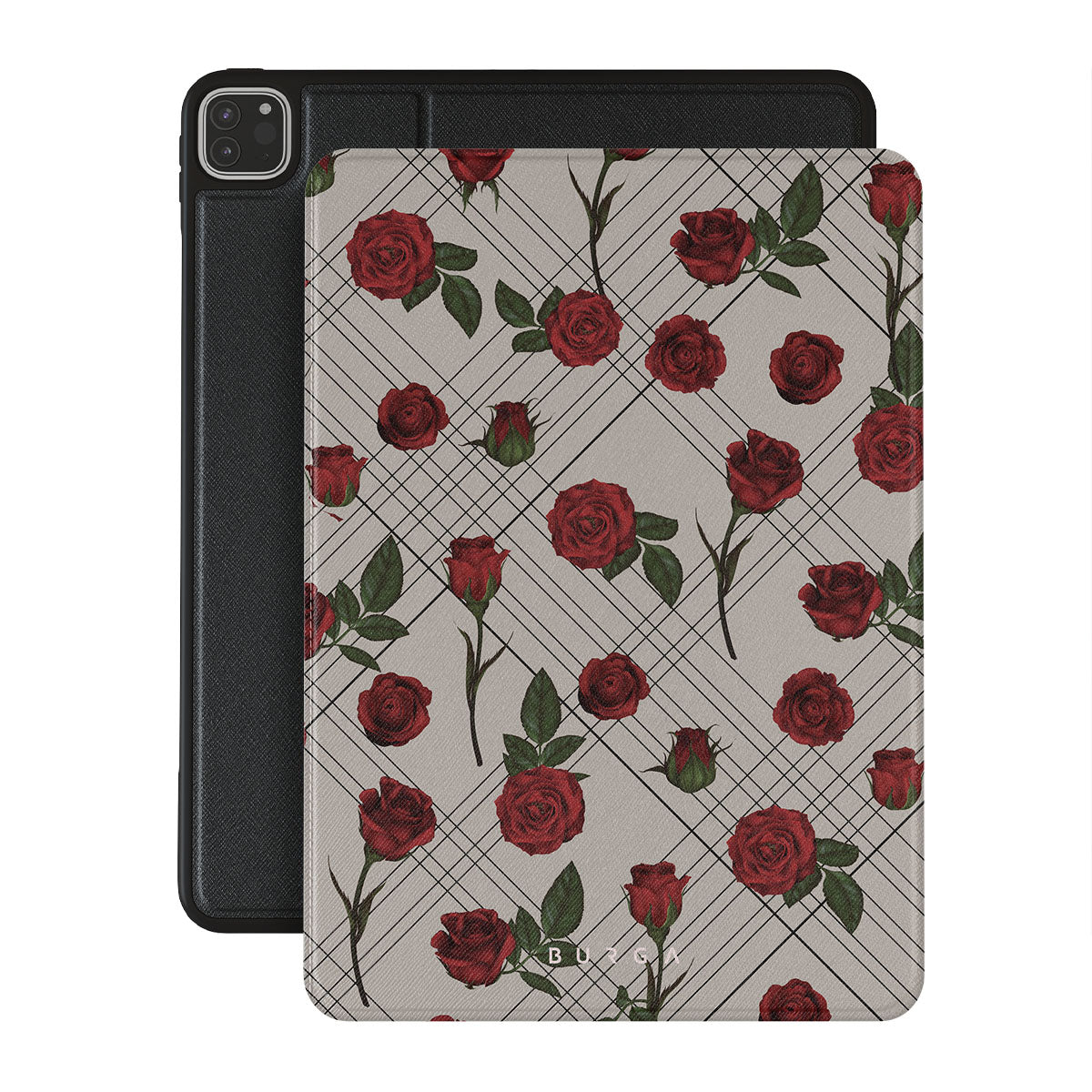 Embrace the subtle rebellion of our Sweet Sin iPad Pro 11 (4th/3rd Gen) folio case design. On a muted nude-gray canvas, scattered small red roses hint at passions hidden beneath the surface. A design that balances the delicate with the daring. Crafted for those who find beauty in the unexpected and wear their edge with elegance.