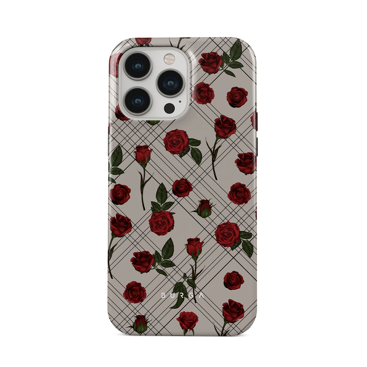 Embrace the subtle rebellion of our Sweet Sin iPhone 14 Pro phone case design. On a muted nude-gray canvas, scattered small red roses hint at passions hidden beneath the surface. A design that balances the delicate with the daring. Crafted for those who find beauty in the unexpected and wear their edge with elegance.
