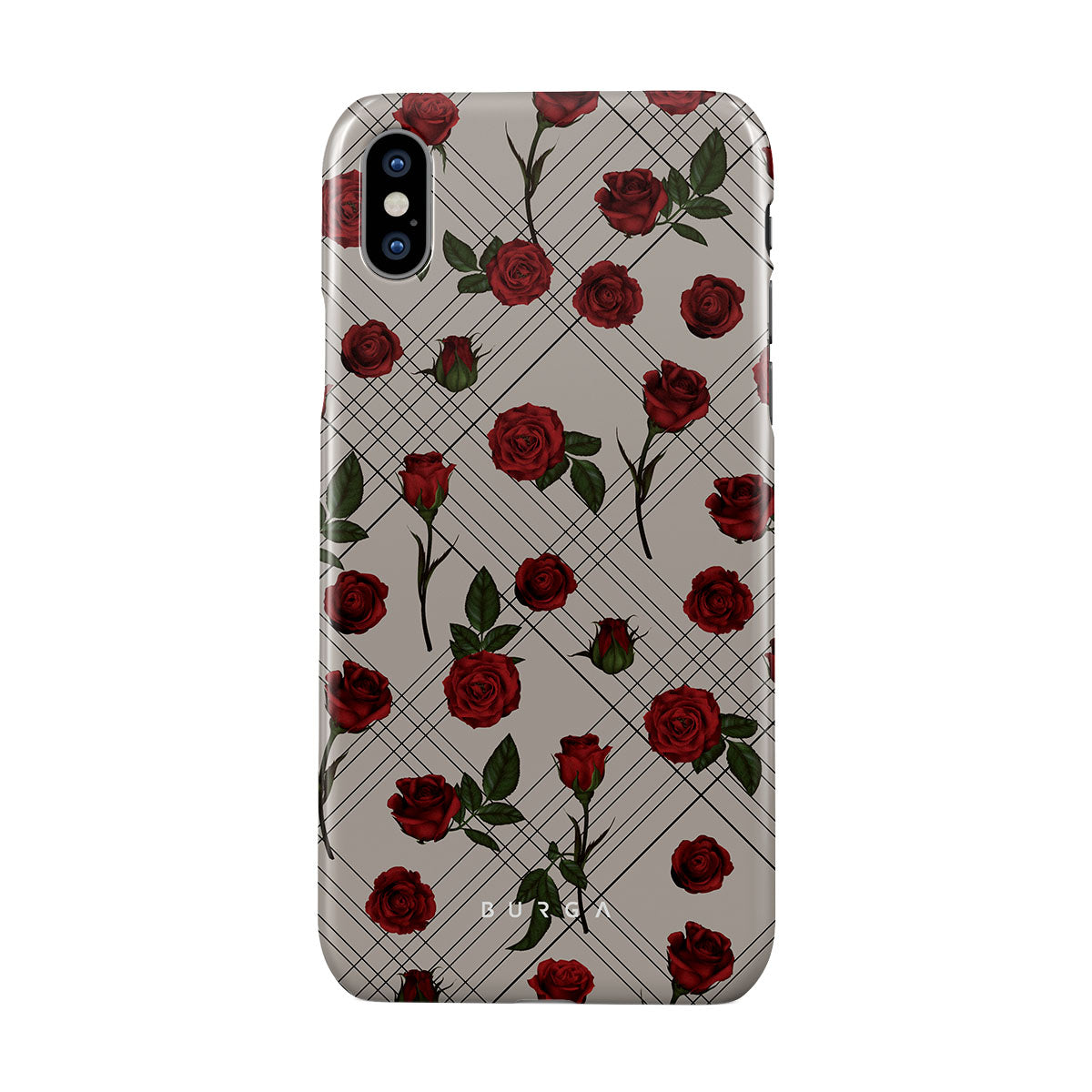 Embrace the subtle rebellion of our Sweet Sin iPhone XS Max phone case design. On a muted nude-gray canvas, scattered small red roses hint at passions hidden beneath the surface. A design that balances the delicate with the daring. Crafted for those who find beauty in the unexpected and wear their edge with elegance.