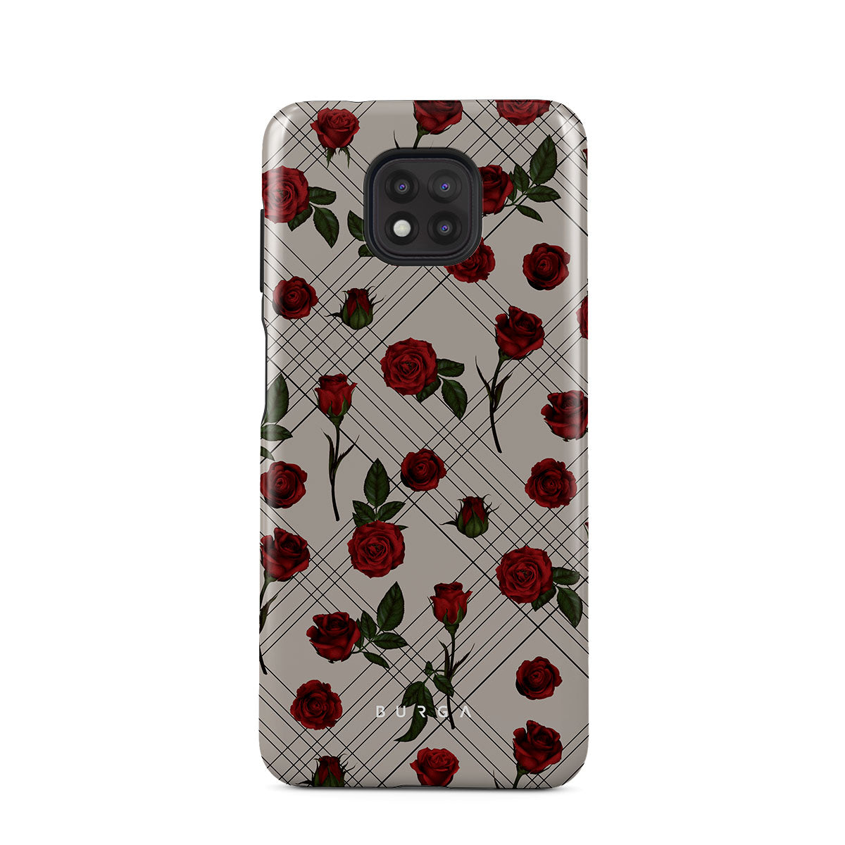 Embrace the subtle rebellion of our Sweet Sin Motorola Moto G Power 2021 phone case design. On a muted nude-gray canvas, scattered small red roses hint at passions hidden beneath the surface. A design that balances the delicate with the daring. Crafted for those who find beauty in the unexpected and wear their edge with elegance.