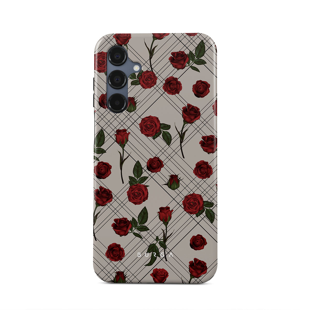 Embrace the subtle rebellion of our Sweet Sin Samsung Galaxy A16 phone case design. On a muted nude-gray canvas, scattered small red roses hint at passions hidden beneath the surface. A design that balances the delicate with the daring. Crafted for those who find beauty in the unexpected and wear their edge with elegance.
