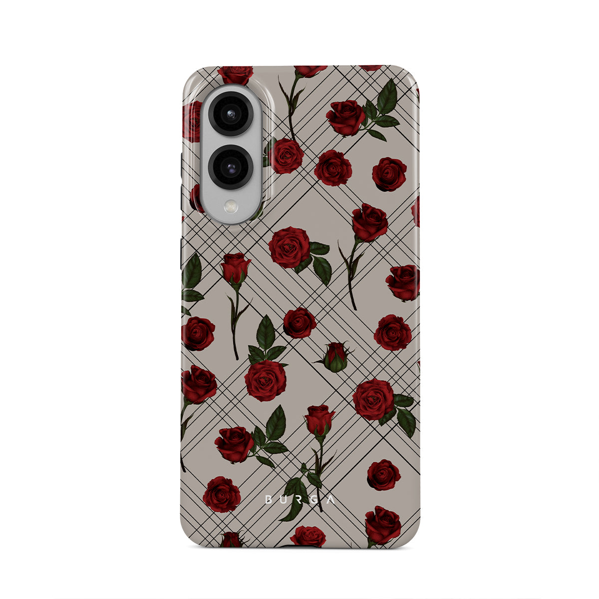 Embrace the subtle rebellion of our Sweet Sin Samsung Galaxy S25 Edge phone case design. On a muted nude-gray canvas, scattered small red roses hint at passions hidden beneath the surface. A design that balances the delicate with the daring. Crafted for those who find beauty in the unexpected and wear their edge with elegance.