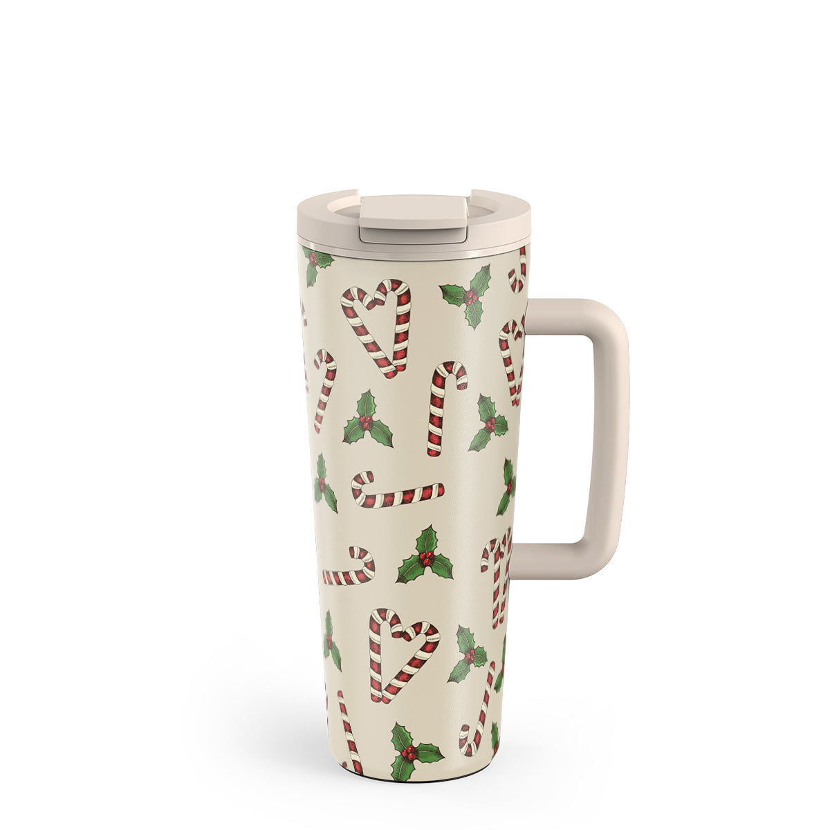 This design features: candy canes, holly, green, white, festive pattern.