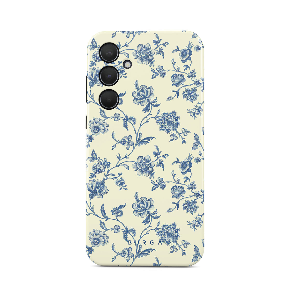Hey, Sweetheart, here's a style secret: vintage blue flowers for that old-school charm. This Samsung Galaxy A35 phone case design is perfect when you want to be sweet yet effortlessly cool.