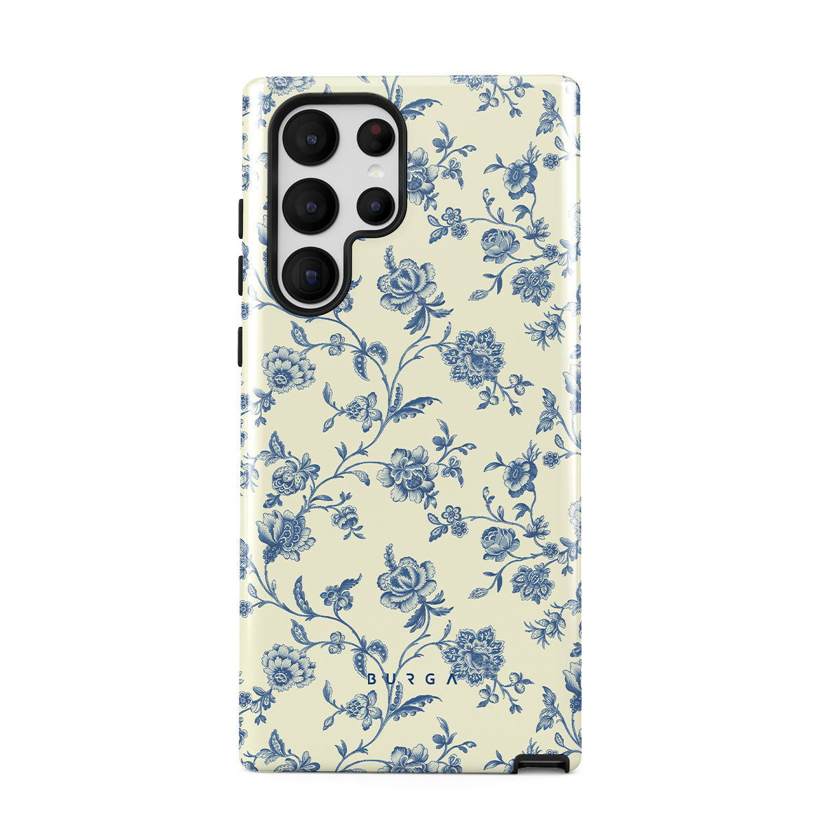 Hey, Sweetheart, here's a style secret: vintage blue flowers for that old-school charm. This Samsung Galaxy S22 Ultra phone case design is perfect when you want to be sweet yet effortlessly cool.