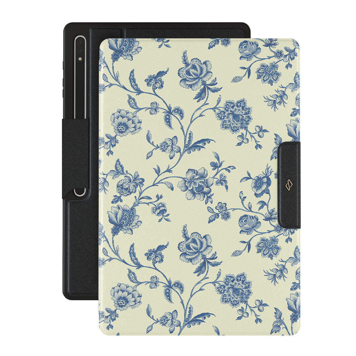 Hey, Sweetheart, here's a style secret: vintage blue flowers for that old-school charm. This Samsung Galaxy Tab S9 Ultra folio case design is perfect when you want to be sweet yet effortlessly cool.