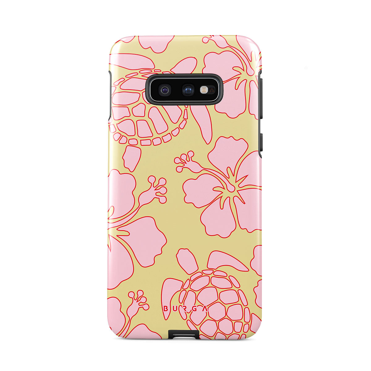 Our bright yellow Samsung Galaxy S10E phone case features bold, beautiful flowers that evoke a sense of nostalgia and happiness. This cheerful floral design captures the essence of joyful moments, making your device a reminder of sunny memories. Perfect for brightening up your day.