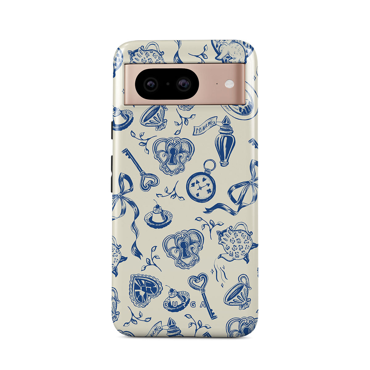 The Tea Party Google Pixel 8 phone case design is a porcelain puzzle—ribbons tangled, time warped, rules rewritten. Sit down, pour a cup, but don’t expect things to make sense. They never do.