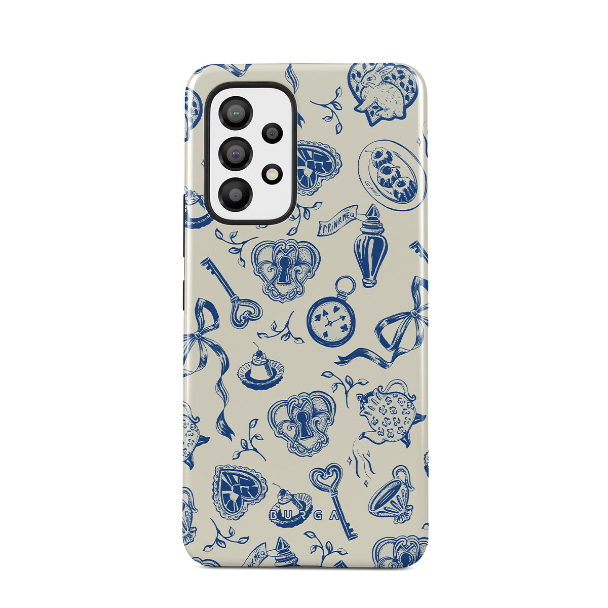 The Tea Party Samsung Galaxy A53 phone case design is a porcelain puzzle—ribbons tangled, time warped, rules rewritten. Sit down, pour a cup, but don’t expect things to make sense. They never do.