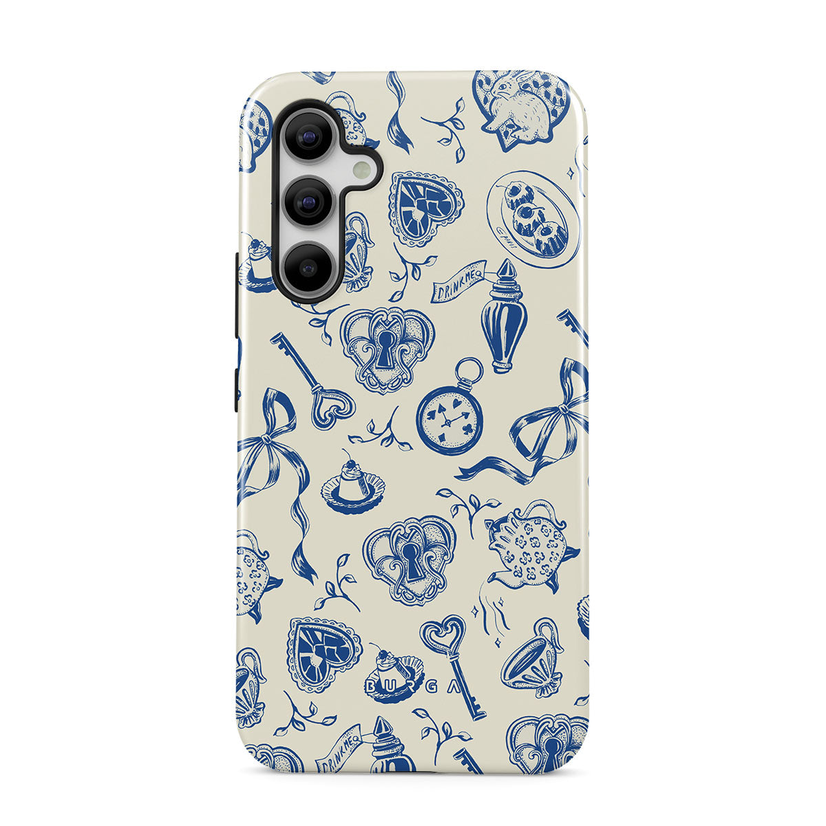 The Tea Party Samsung Galaxy A55 phone case design is a porcelain puzzle—ribbons tangled, time warped, rules rewritten. Sit down, pour a cup, but don’t expect things to make sense. They never do.
