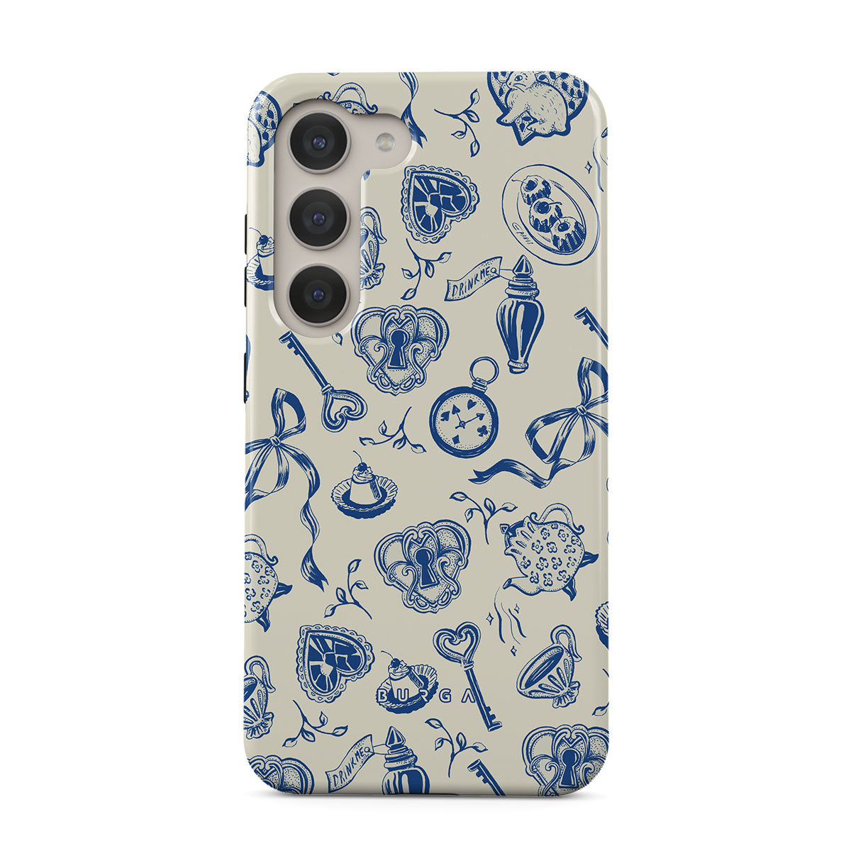 The Tea Party Samsung Galaxy S23 phone case design is a porcelain puzzle—ribbons tangled, time warped, rules rewritten. Sit down, pour a cup, but don’t expect things to make sense. They never do.
