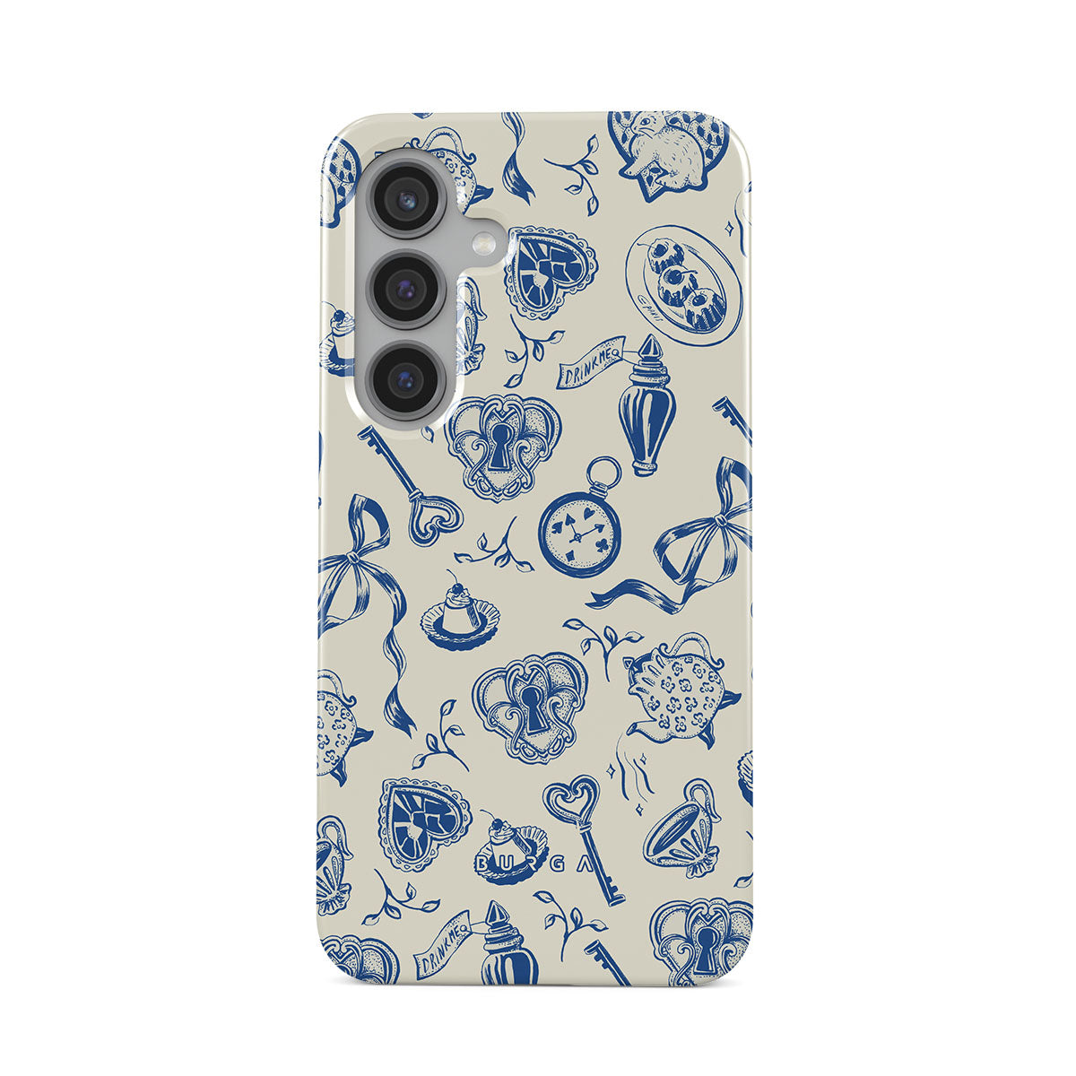 The Tea Party Samsung Galaxy S24 Plus phone case design is a porcelain puzzle—ribbons tangled, time warped, rules rewritten. Sit down, pour a cup, but don’t expect things to make sense. They never do.