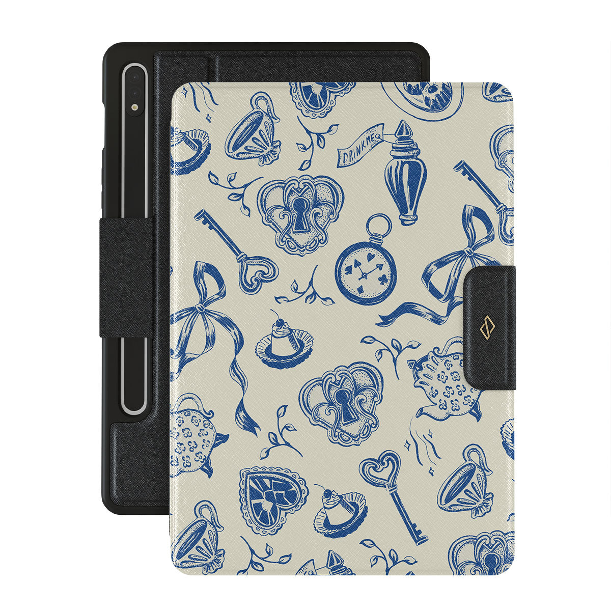 The Tea Party Samsung Galaxy Tab S10+ folio case design is a porcelain puzzle—ribbons tangled, time warped, rules rewritten. Sit down, pour a cup, but don’t expect things to make sense. They never do.