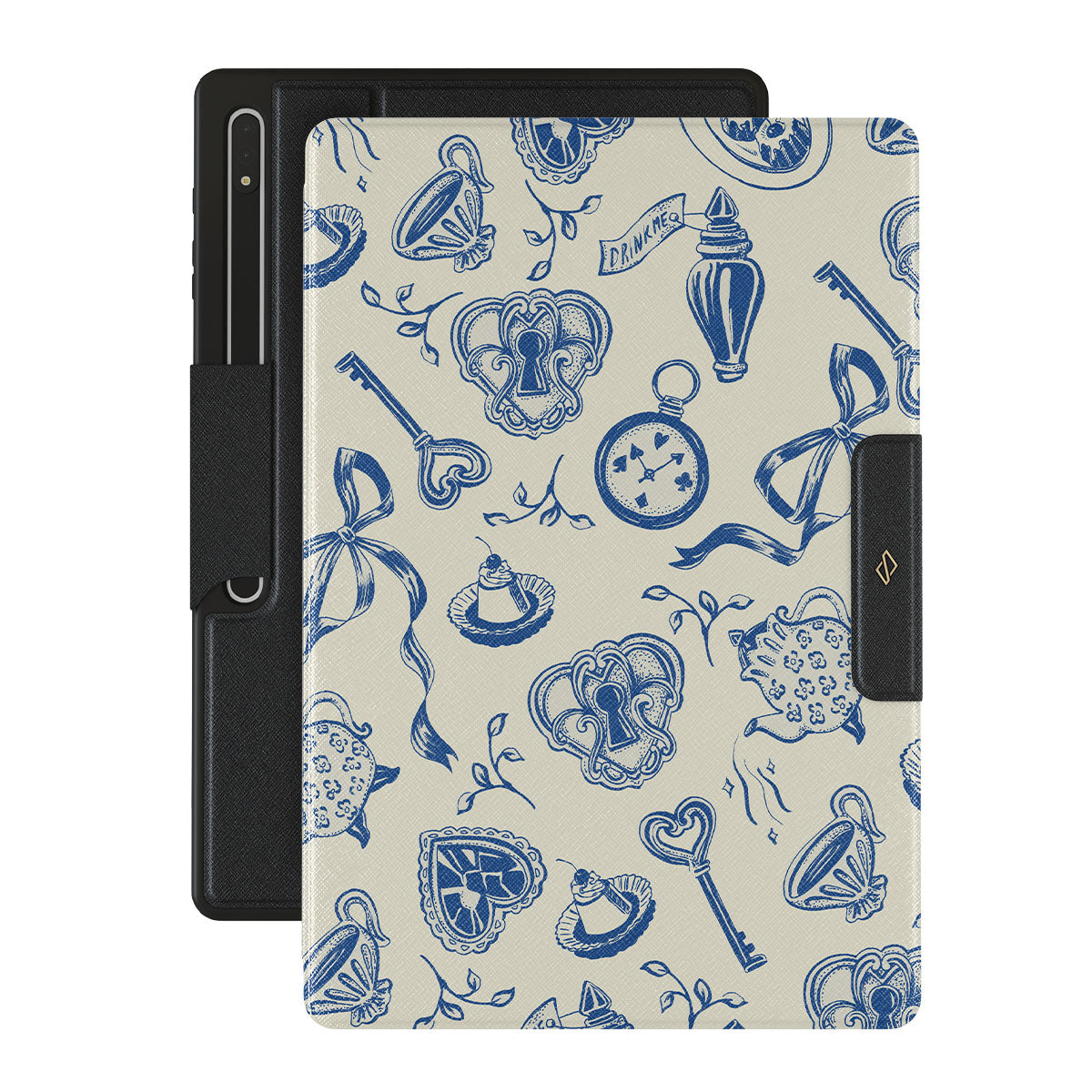 The Tea Party Samsung Galaxy Tab S8 Ultra folio case design is a porcelain puzzle—ribbons tangled, time warped, rules rewritten. Sit down, pour a cup, but don’t expect things to make sense. They never do.