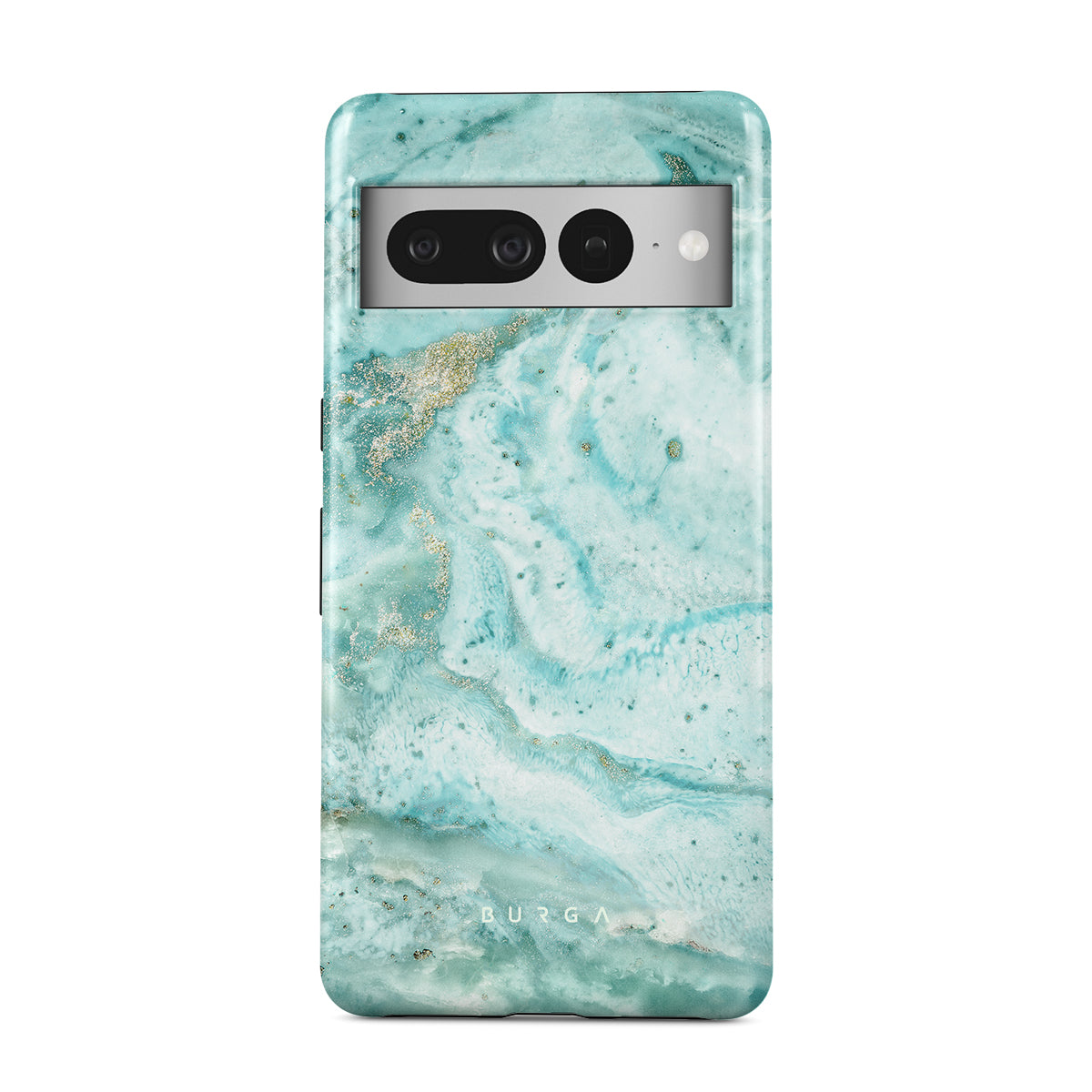 Our Uluwatu Waves Google Pixel 7 Pro phone case is an absolute teal dream. This phone cover features timeless and soft blue marble pattern enriched with golden color specks will surely remind you of a tropical beach teal waters while becoming a protective best friend for your cell phone.