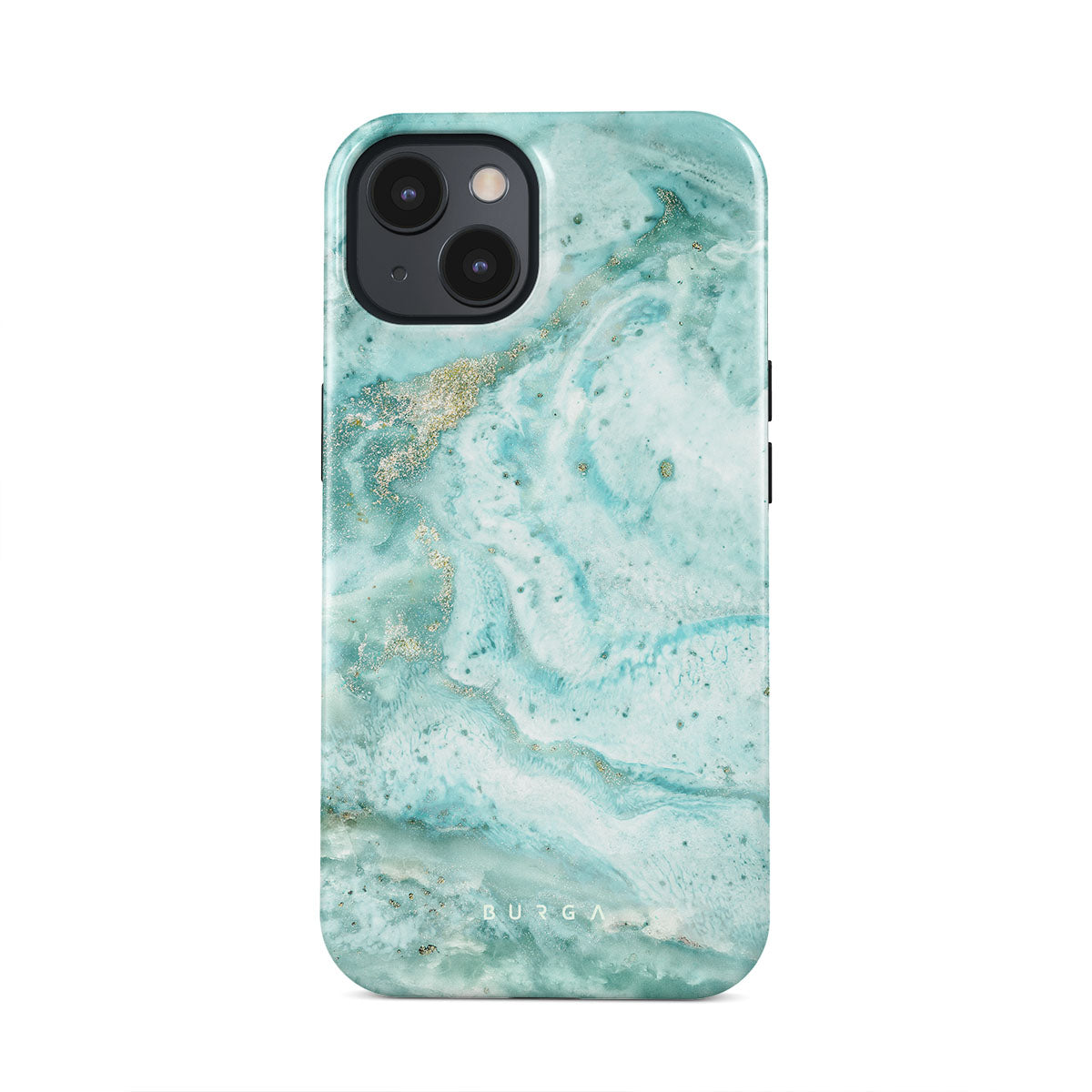 Our Uluwatu Waves iPhone 14 phone case is an absolute teal dream. This phone cover features timeless and soft blue marble pattern enriched with golden color specks will surely remind you of a tropical beach teal waters while becoming a protective best friend for your cell phone.