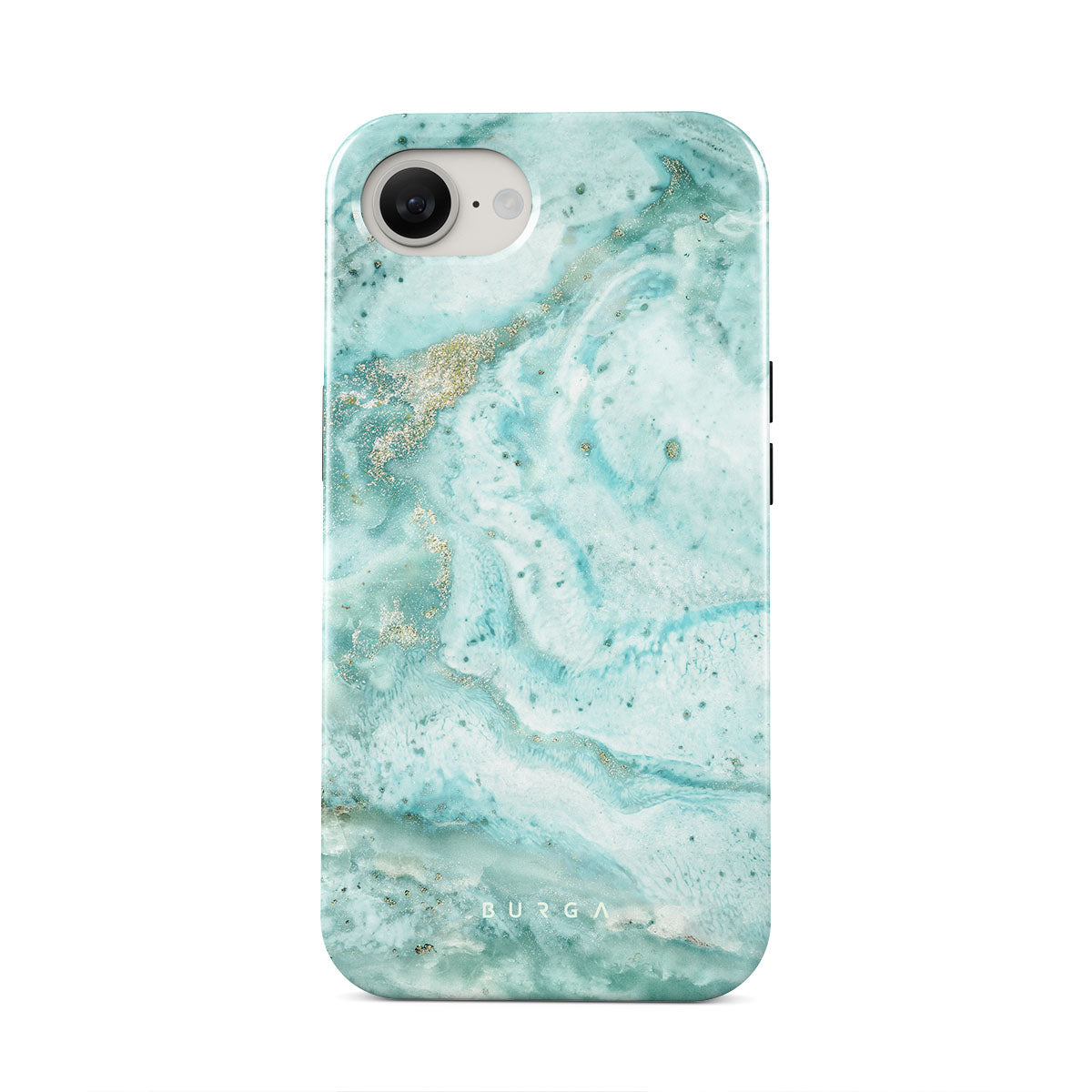 Our Uluwatu Waves iPhone 16e phone case is an absolute teal dream. This phone cover features timeless and soft blue marble pattern enriched with golden color specks will surely remind you of a tropical beach teal waters while becoming a protective best friend for your cell phone.