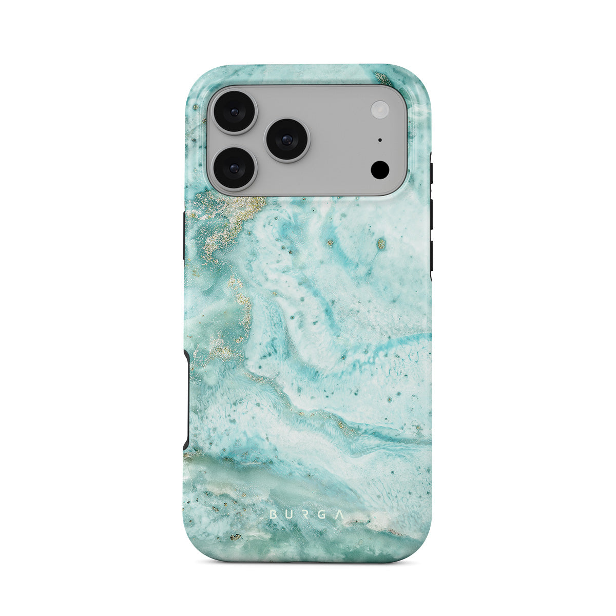 Our Uluwatu Waves iPhone 17 Pro Max phone case is an absolute teal dream. This phone cover features timeless and soft blue marble pattern enriched with golden color specks will surely remind you of a tropical beach teal waters while becoming a protective best friend for your cell phone.