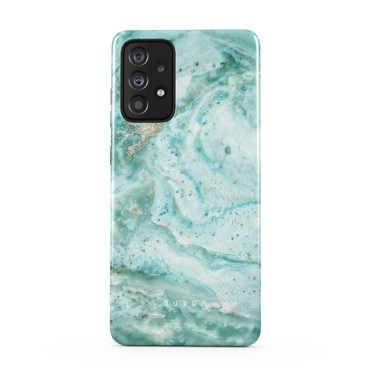 Our Uluwatu Waves Samsung Galaxy A52 / A52S 4G / 5G phone case is an absolute teal dream. This phone cover features timeless and soft blue marble pattern enriched with golden color specks will surely remind you of a tropical beach teal waters while becoming a protective best friend for your cell phone.
