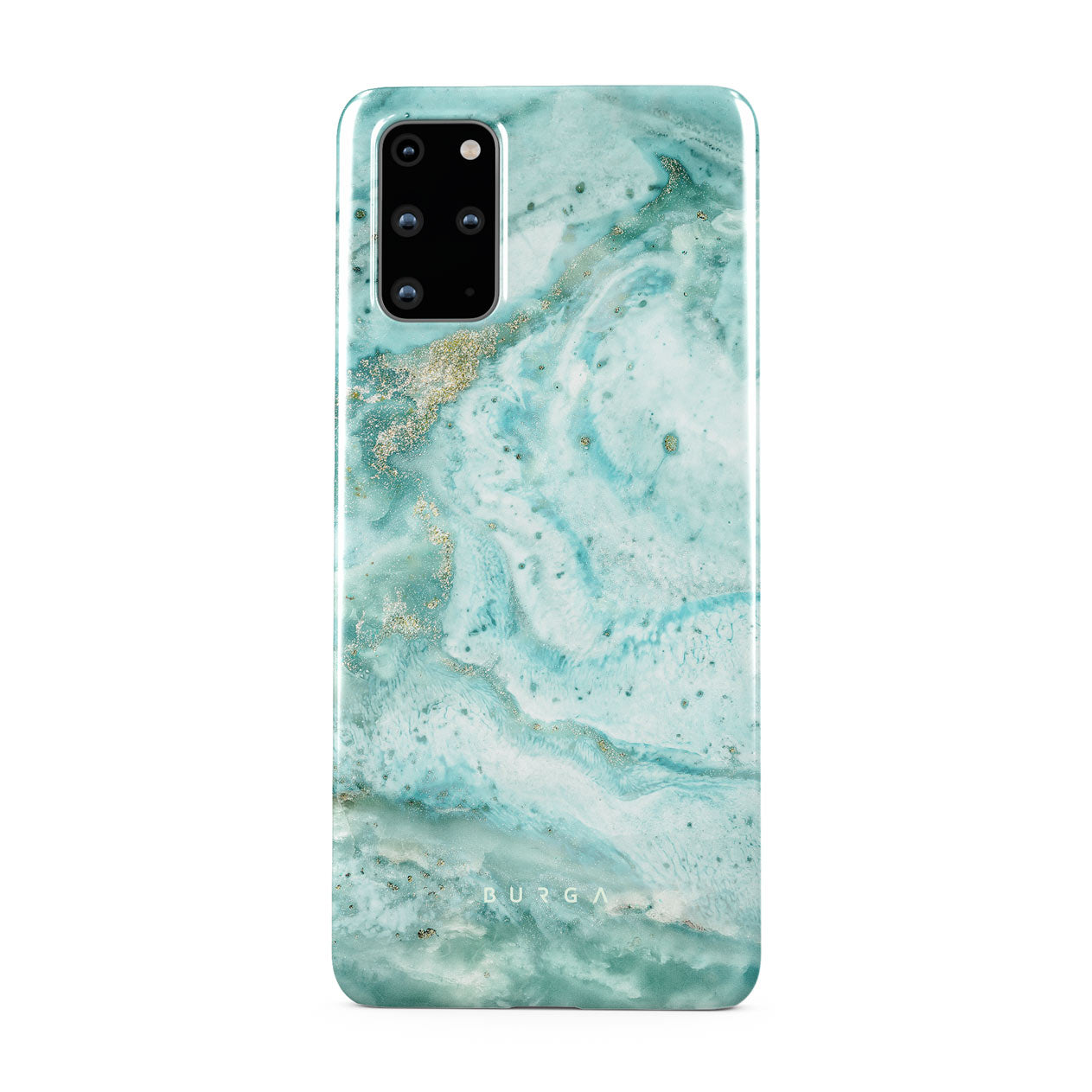 Our Uluwatu Waves Samsung Galaxy S20 Plus 4G / 5G phone case is an absolute teal dream. This phone cover features timeless and soft blue marble pattern enriched with golden color specks will surely remind you of a tropical beach teal waters while becoming a protective best friend for your cell phone.