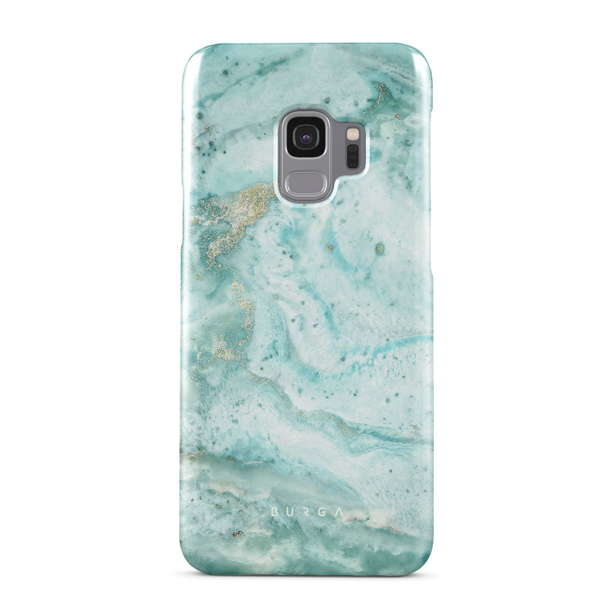 Our Uluwatu Waves Samsung Galaxy S9 phone case is an absolute teal dream. This phone cover features timeless and soft blue marble pattern enriched with golden color specks will surely remind you of a tropical beach teal waters while becoming a protective best friend for your cell phone.