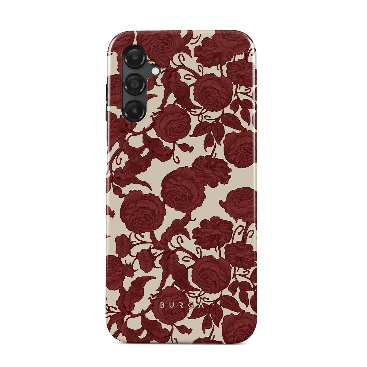 This design features: dark red roses, intricate floral pattern, vintage pattern