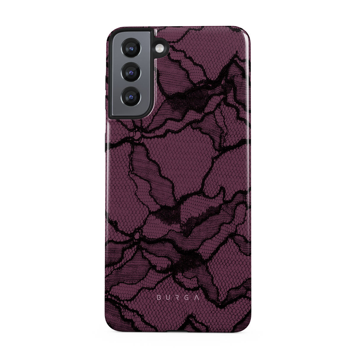 This design, reminiscent of a fragment of a vintage lace dress, captivates and invites touch. It’s perfect for the woman who commands attention with just a glance. With this Samsung Galaxy S21 phone case design, every day is your stage, making you That Girl – the one who effortlessly blends mystery, boldness, and a flair of old-world charm into today's trends.