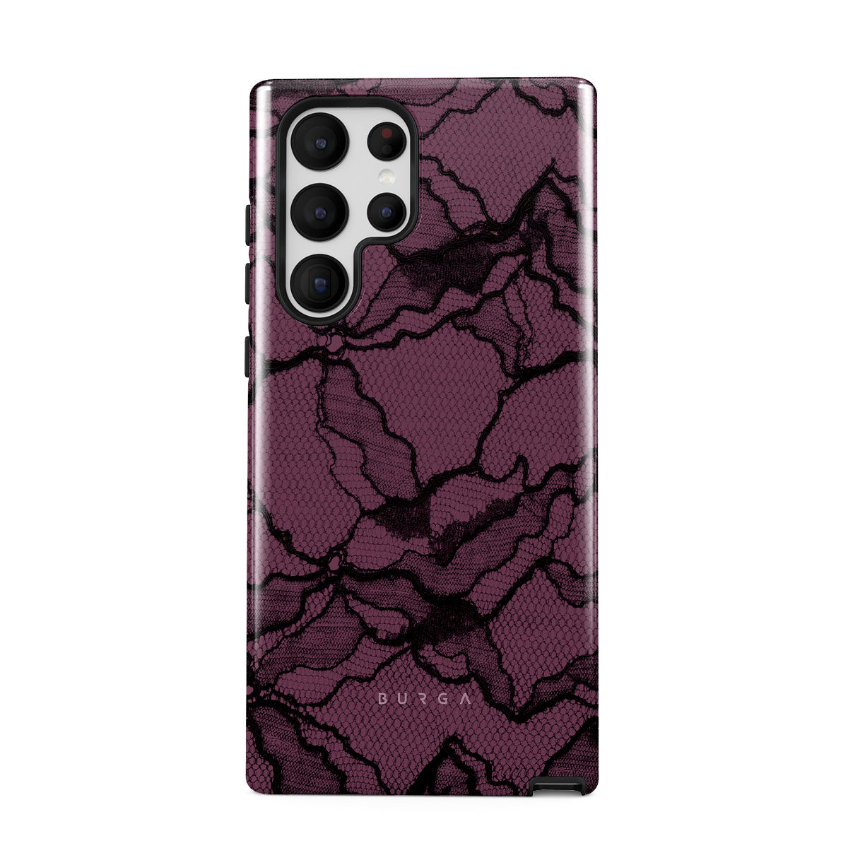 This design, reminiscent of a fragment of a vintage lace dress, captivates and invites touch. It’s perfect for the woman who commands attention with just a glance. With this Samsung Galaxy S22 Ultra phone case design, every day is your stage, making you That Girl – the one who effortlessly blends mystery, boldness, and a flair of old-world charm into today's trends.