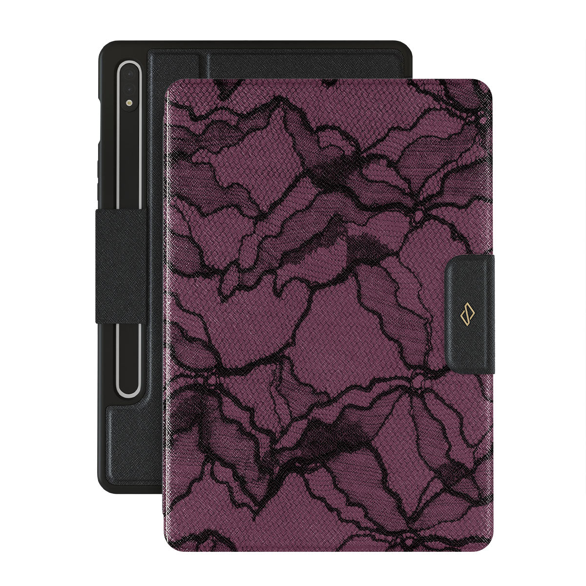 This design, reminiscent of a fragment of a vintage lace dress, captivates and invites touch. It’s perfect for the woman who commands attention with just a glance. With this Samsung Galaxy Tab S8+/S7+/S7 FE folio case design, every day is your stage, making you That Girl – the one who effortlessly blends mystery, boldness, and a flair of old-world charm into today's trends.