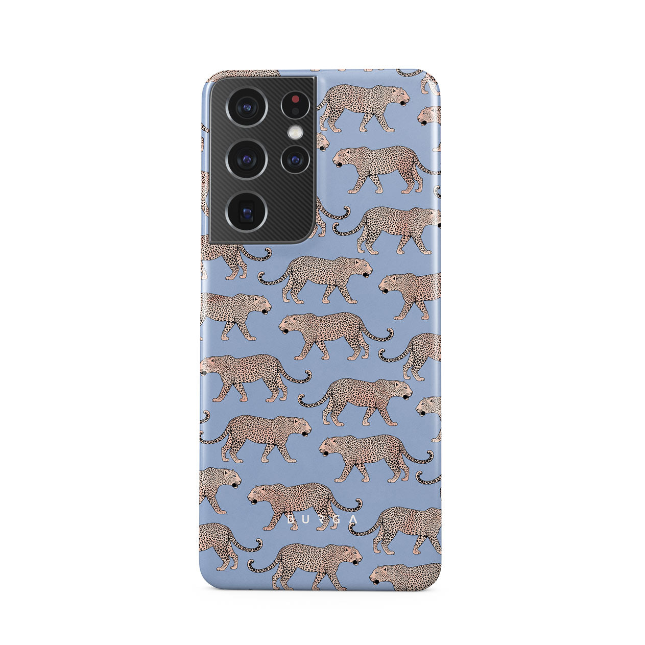 Be wild and free with our Tourist Trap Samsung Galaxy S21 Ultra phone case. The tiger print in a pastel blue background has a chic feel of an actual designer item. Add some edge to your style and also protect your phone from any sharp edges at the same time.