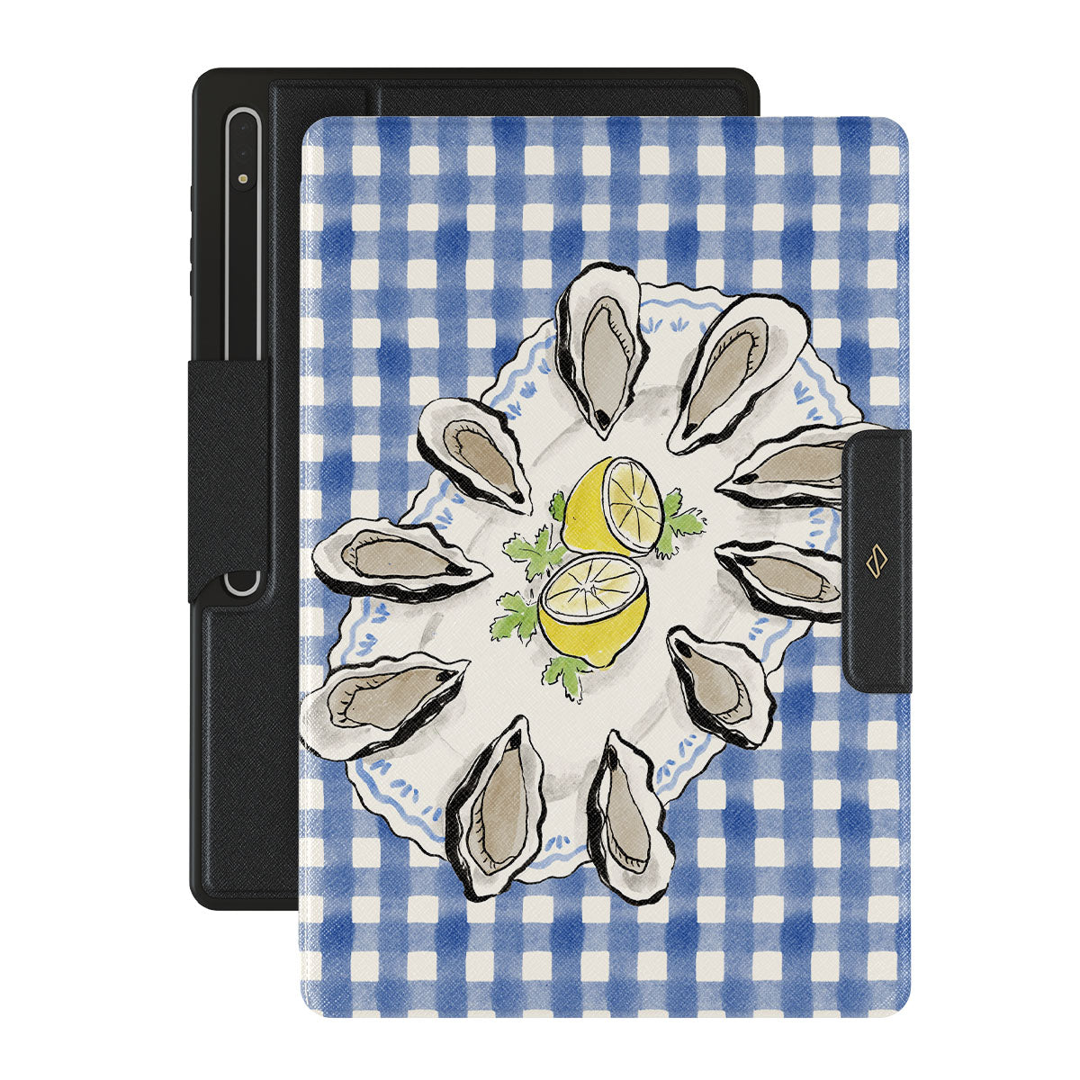 Fresh oysters, zesty lemon, and a touch of Mediterranean breeze wrapped in blue gingham. This Samsung Galaxy Tab S8 Ultra folio case design is the secret menu only locals know about—simple, fresh, and absolutely irresistible.