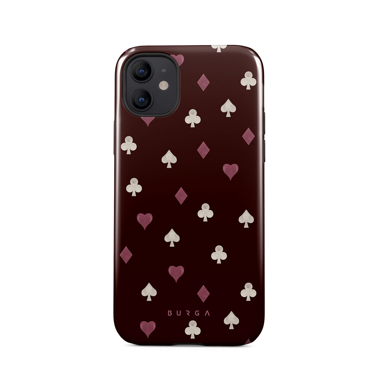 Nothing is as it appears. Hearts, clubs, diamonds, and spades—stacked in your favor or playing against you? This iPhone 12 phone case design features a rich burgundy background and minimalist suits that make for a game where the rules are constantly shifting.