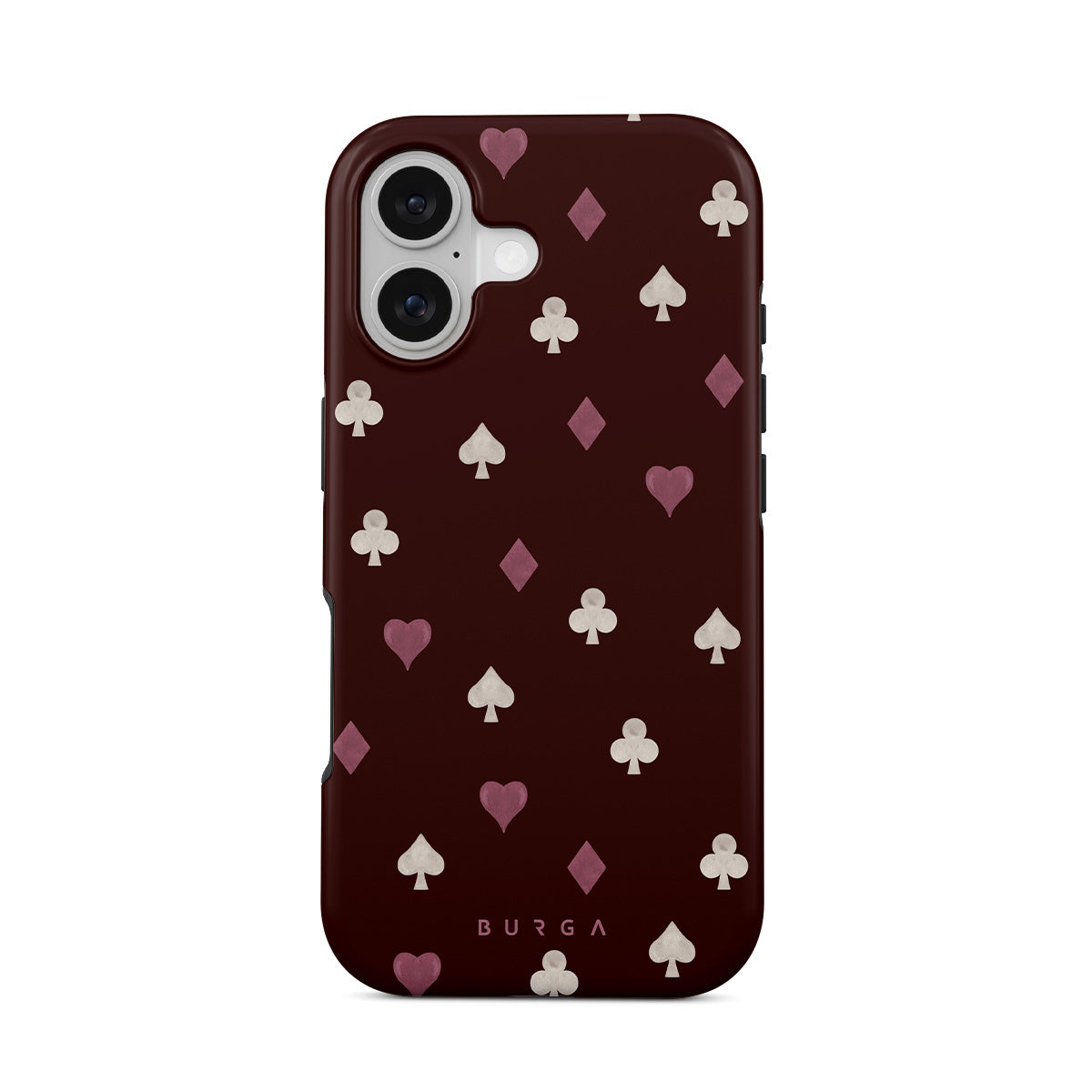 Nothing is as it appears. Hearts, clubs, diamonds, and spades—stacked in your favor or playing against you? This iPhone 17 phone case design features a rich burgundy background and minimalist suits that make for a game where the rules are constantly shifting.