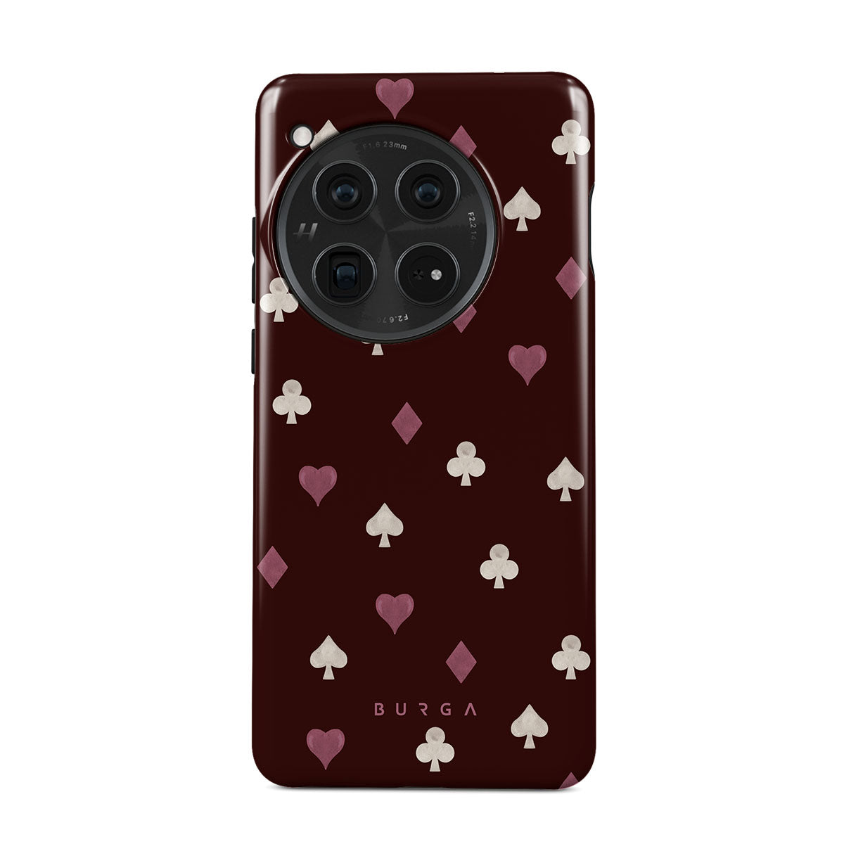 Nothing is as it appears. Hearts, clubs, diamonds, and spades—stacked in your favor or playing against you? This OnePlus 12 phone case design features a rich burgundy background and minimalist suits that make for a game where the rules are constantly shifting.