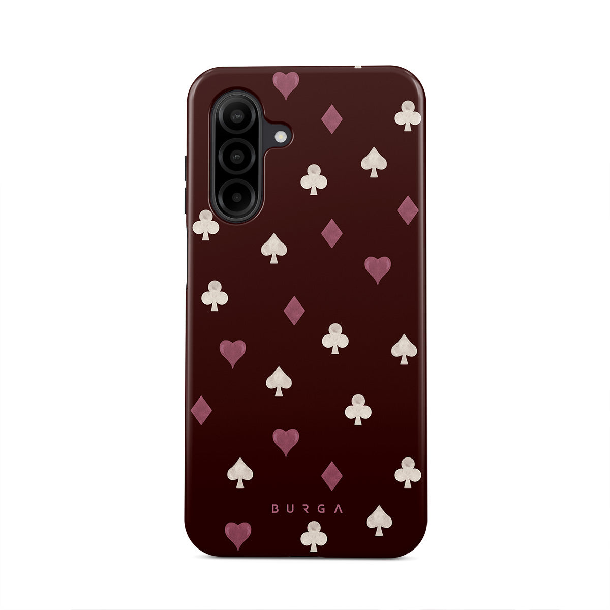 Nothing is as it appears. Hearts, clubs, diamonds, and spades—stacked in your favor or playing against you? This Samsung Galaxy A26 5G phone case design features a rich burgundy background and minimalist suits that make for a game where the rules are constantly shifting.