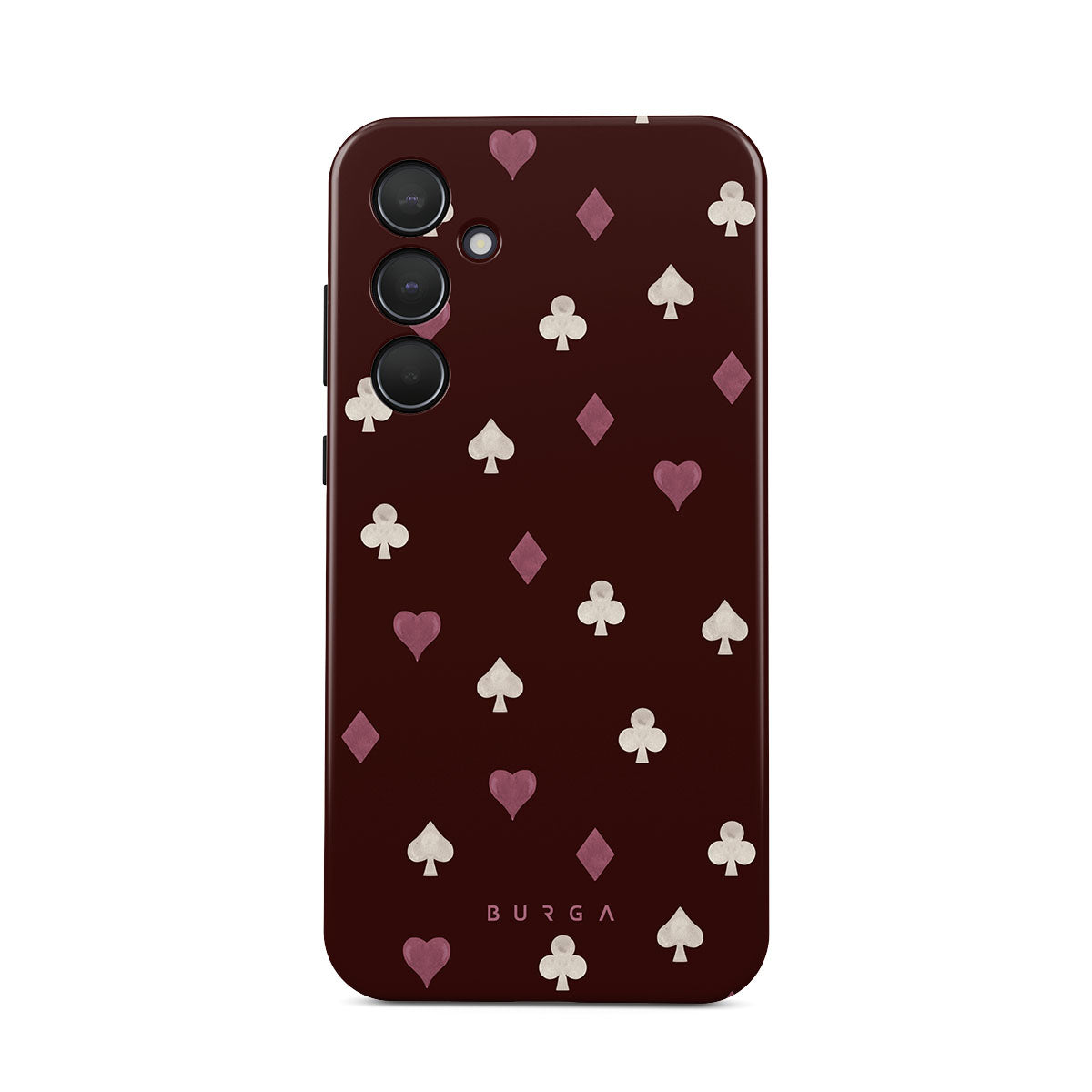 Nothing is as it appears. Hearts, clubs, diamonds, and spades—stacked in your favor or playing against you? This Samsung Galaxy A35 phone case design features a rich burgundy background and minimalist suits that make for a game where the rules are constantly shifting.